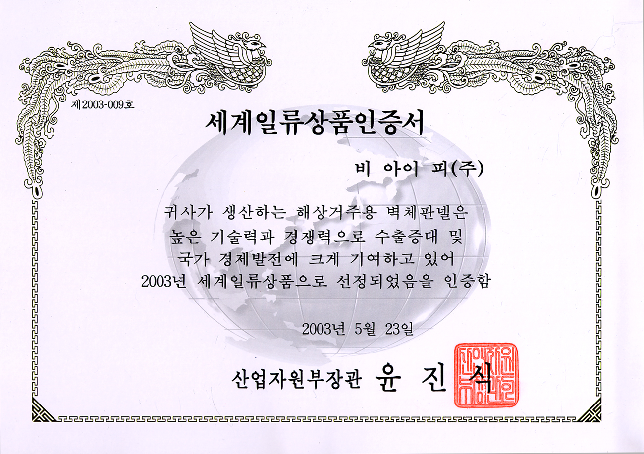 세계일류상품인증서