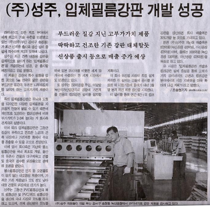 "입체필름강판 개발성공"이라는 주제로 (주)성주 유진일 사장의 인터뷰 등이 실려있다.